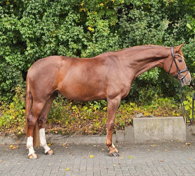 Zum Verkauf steht die 5-jährige Dressurstute Dolce Vita, abstammend von Don Romance x Fürst Romancier. Die elegante Fuchsstute präsentiert sich langbeinig, modern im Typ und fällt mit ihrer auffälligen „bunten Jacke“ sofort ins Auge. Dolce Vita überzeugt nicht nur durch ihre Erscheinung, sondern auch durch ihre Einstellung zur Arbeit. Sie ist sehr lernwillig, intelligent und zeigt sich stets motiviert unter dem Reiter – ein ideales Pferd für ambitionierte Reiter, die ein talentiertes Nachwuchspferd weiter fördern möchten. Bereits im letzten Jahr konnte sie ihre Qualität unter Beweis stellen und gewann eine Reitpferdeprüfung mit der Note 8,6. Aktuell ist sie Dressurpferde A sicher, und erste Lektionen der Klasse L wurden bereits spielerisch begonnen. Dolci ist ein Ausbildungspferd, das mit Rittigkeit, Lernbereitschaft und Perspektive überzeugt. Eine Stute, die sowohl sportlich als auch optisch keine Wünsche offen lässt und ihrem zukünftigen Reiter viel Freude bereiten wird. Standort: Diepholz
