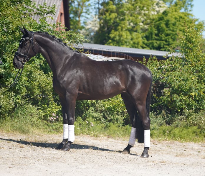For sale is this large-framed daughter of Benay. She was backed by us and proved to be uncomplicated during the process. Currently, she is on her way to Dressage Horse A level. She has a lovely, expressive walk, a lively trot, and a good canter. In handling and within the herd, she has always been well-behaved and calm with us. Please no emails, only phone calls. All information is provided without guarantee. Price excluding VAT.