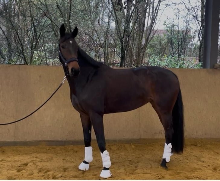This stunning and incredibly honest Hanoverian mare is looking for a new five-star home. Year of birth: 2021 Height: 174 cm She is a beautiful, typey Hanoverian mare that immediately captivates with her appearance and impeccable character. She is very straightforward, well-behaved, and reliable both in daily handling and under saddle. This affectionate mare is very attentive to humans and enjoys all forms of attention. She truly blossoms during grooming and cuddling sessions. Madonna is always friendly, polite, and makes it easy to simply love her. Even in daily training, she impresses with her excellent work attitude, making riding a real pleasure. She is currently at an solid elementary level in dressage and has already been successfully presented at competitions. She also enjoys pole work and cavaletti exercises, always showing herself to be well-behaved and completely unfazed. However, jumping has not been specifically trained so far. She is a horse that is always eager to participate, motivated to learn new things, and simply wants to please her rider at all times—whether in the indoor arena, on the riding field, or in unfamiliar surroundings. She is also very easy and friendly when it comes to interactions with other horses. An absolute dream horse suitable for both ambitious riders and leisure riders. She offers excellent potential for further learning, growth, and lots of joy together.