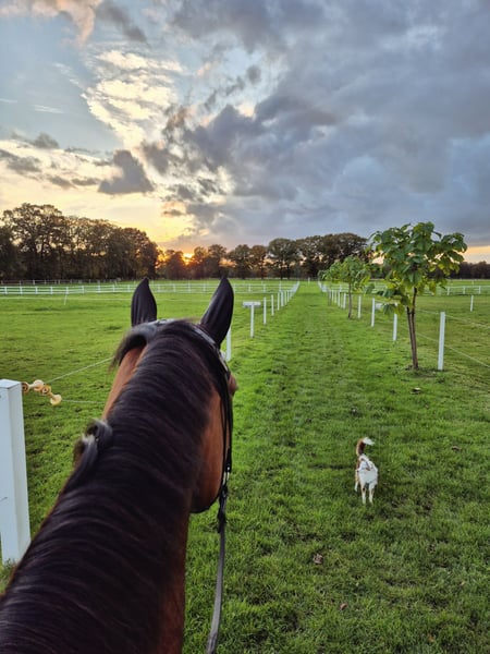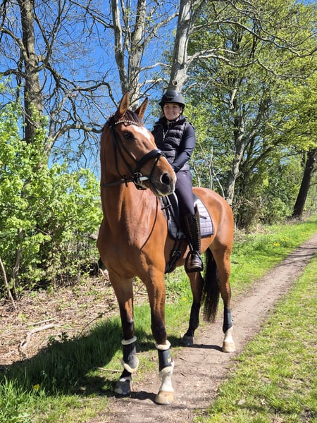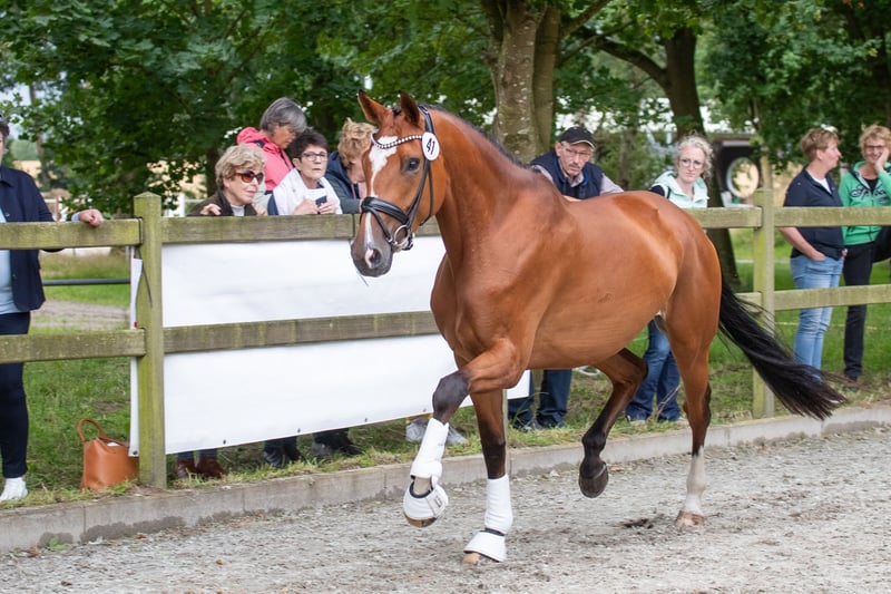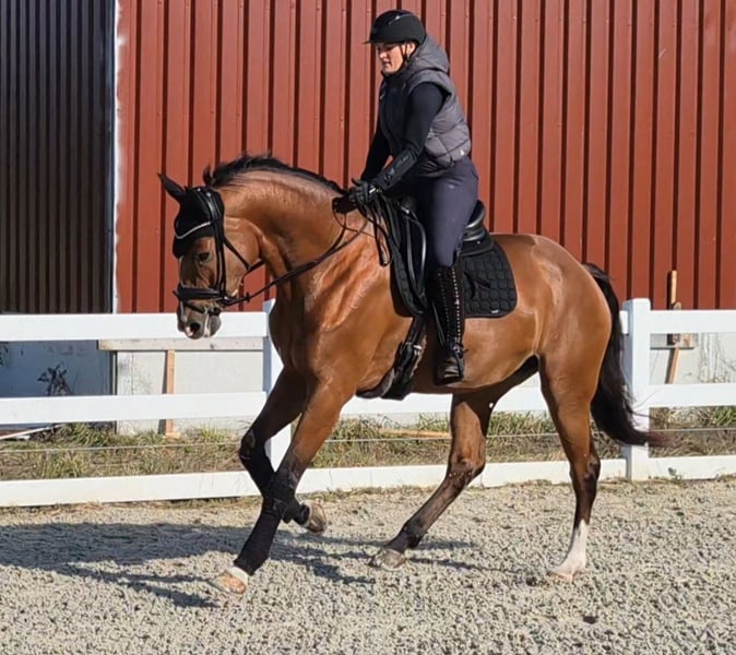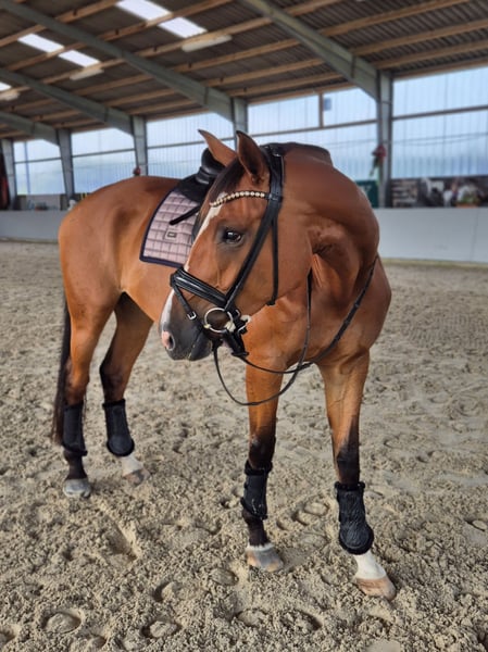 A la venta nuestra yegua Hannoverana de 5 años, Zayla. Todavía está en manos de su criador y se vende únicamente a personas que le brinden un trato amoroso. Es descendiente de Zackerey - Detroit - Fürst Heinrich - Feinbrand - Vollkorn xx. Mide aproximadamente 1,76 m, por lo que ha tenido mucho tiempo para desarrollarse plenamente. Zayla es tranquila en su manejo, se deja atar y preparar sin problemas en cualquier lugar. Siempre ha ido regularmente al herrador. Actualmente lleva herraduras en las cuatro patas, ya que camina bastante sobre terrenos duros. Es tranquila al recortar y herrar. Zayla tiene un nivel de entrenamiento sólido, conoce la pista, el paddock y el campo. No importa si trabaja sola o con otros caballos, lo hace con la misma tranquilidad. También sale sola al campo, aunque personalmente prefiero acompañarla con otros, por lo que no ha salido mucho en solitario. Es relajada y confiada en el campo. Disfruta mucho de estos paseos y transmite seguridad a su jinete. Aunque es joven, tiene una actitud bastante tranquila, aunque, por su edad, puede asustarse, dar bocks o rears, pero nunca se niega ni se muestra nerviosa. También conoce perros de todos los tamaños. Nuestro pequeño y activo perro mini-Aussie a menudo la acompaña, pasándole por delante o por detrás sin que le moleste. Tampoco le afectan máquinas como tractores o cargadores. Zayla se carga sin problemas sin ayuda adicional, y se puede conducir con facilidad. No hay problema en descargarla sola, atarla al remolque y prepararla. No necesita ser longeada en un entorno desconocido. Gracias a su buen paso y a su activa zancada trasera, Zayla ha recibido la distinción de potencial y puede ser utilizada también en la reproducción en la raza Hannoverana. Zayla está acostumbrada a salir sola o en manada. Suele ser de rango bajo y se lleva bien con otros caballos. Buscamos para Zayla un jinete que la apoye con paciencia y que también disfrute de paseos relajados en el campo. Debido a su edad y tamaño, Zayla no es un caballo ideal para principiantes, aunque sea muy obediente. Como ha tenido mucho tiempo para crecer, aún no está completamente desarrollada. A veces no es muy estable en la guía y se nota que todavía no controla completamente su gran cuerpo. Hasta ahora, Zayla nunca ha estado enferma ni cojeado, salvo por una infección. Incluso si en alguna ocasión tiene alguna pequeña mancha, es muy resistente. Creció en una manada mixta (de diferentes edades) y pasaba diariamente entre 10 y 12 horas en pasto. En el resto del tiempo, tenía acceso constante a forraje de buena calidad. ¿Nos has despertado interés? ¿Quieres conocer a Zayla? No dudes en contactarnos aquí o por WhatsApp.
