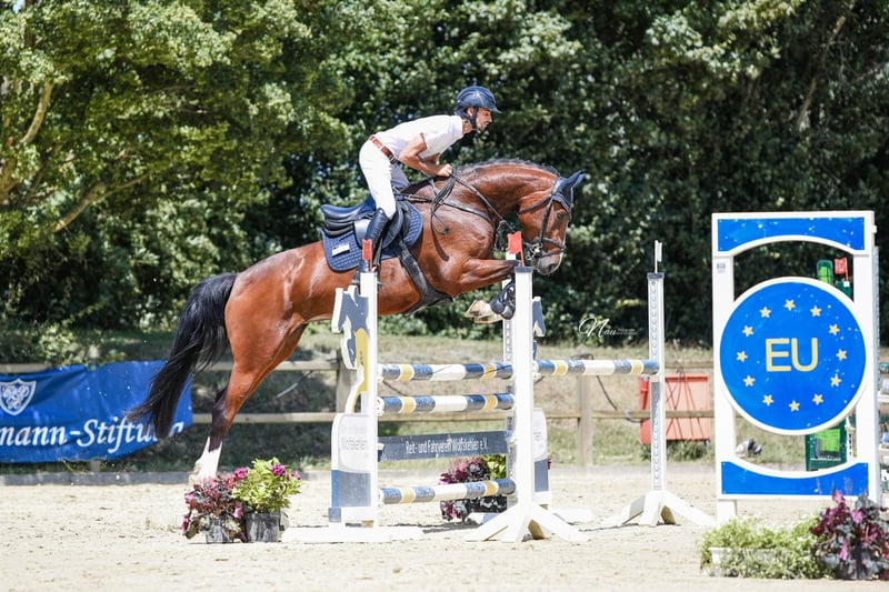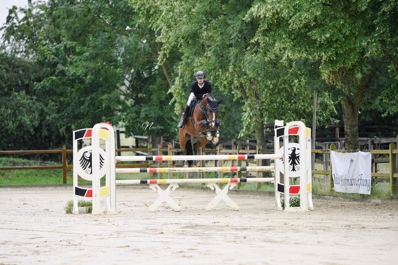 Exceptional Young Mare with Qualified for the Bundeschampionat Quick Qualita, by Quaid out of Diacontinus, is a highly promising young mare with excellent sporting potential. Born in 2020 and standing approximately 16.3 hh, she combines talent, ease of movement, and absolute reliability in an ideal way. As a show jumping talent with plenty of go and awareness, she has successfully competed up to M-level show jumping tests at just five years old. She easily qualified for the Bundeschampionat of five-year-old show jumpers. Additionally, she has consistently placed in jumping classes up to L-level, including scores up to 8.8. Beyond her sporting qualities, Quick Qualita impresses with her exceptionally friendly character. She is affectionate, human-oriented, and very pleasant to handle daily. A horse that simply brings joy. Quick Qualita is an ideal horse for ambitious amateurs. A true reliable partner who offers confidence even to less experienced riders, while also providing opportunities for further sporting development and the pursuit of ambitious goals. A horse that combines sporting potential, rideability, and character at a high level.