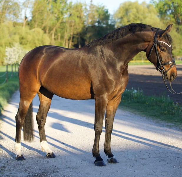 Eine wunderschöne, 2020 geborene braune Stute von Vivaldi x Don Index. Diese charmante Dame überzeugt nicht nur durch ihre ansprechende Abstammung, sondern auch durch ihren liebevollen und umgänglichen Charakter. - Farbe: Braun - Abstammung: Vivaldi x Don Index - Gangarten: 3 schöne Grundgangarten Sie zeigt sich im Umgang als äußerst lieb und verträglich. Zudem ist sie schmiedefromm und verladefromm. Ich kann sie mir sehr gut in einem offenstall vorstellen da sie sich sehr gerne bewegt und andere Pferde sehr liebt. Sie ist aber kein Kleber. Also sie geht auch gut von anderen Pferden weg und in der Halle alleine ist auch kein Problem. Sie ist aber kein Anfänger Pferd sie braucht erfahrene Hände und jemand der viel Zeit und konsequent sie ausbildet. Sie läuft gerne hat viel power ist aber ein sehr robustes Pferd. Kern gesund!! Ich muss mich aus zeitlichen Gründen von ihr trennen. Man muss sich ausgiebig mit ihr beschäftigen und das kann ich ihr leider nicht bieten. Sie kennt Sattel Trense, Reiter an der Longe in allen 3 Grundgangarten. Sie wurde vorletztes Jahr angeritten und dann wieder auf die Koppel gestellt wegen Zeitmangel. 9🥕🥕🥕 Bei Fragen gerne 01602294861 oder freilaufende Videos