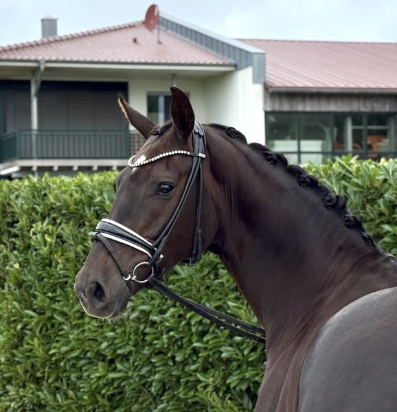 Zum Verkauf steht eine elegante und talentierte Hannoveraner Stute, geboren im Jahr 2019. Sie präsentiert sich in einem edlen Dunkelfuchs-Farbton und überzeugt durch ihre ansprechende Erscheinung sowie ihre gute Abstammung. Mit einem Stockmaß von ca. 165 cm ist sie perfekt für ambitionierte Dressurreiter, die Wert auf Qualität und Bewegung legen. Ihre Grundgangarten sind vielversprechend, und sie zeigt großes Potenzial für den Dressursport. Die Stute ist gesund, regelmäßig geimpft und schmerzfrei. Sie ist freundlich im Umgang, lernwillig und arbeitet motiviert unter dem Sattel. Bei Interesse oder für weitere Informationen stehe ich gerne zur Verfügung. Eine Probefahrt ist nach Absprache möglich. Ich freue mich auf Ihre Kontaktaufnahme!