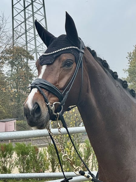 Te koop staat een mooie bruin Hannoveraanse merrie met een aansprekend uiterlijk en een fijn karakter. Ze toont zich altijd makkelijk, ontspannen en zeer rijdbaar, en beschikt over drie uitstekende basisgangen. Al op vierjarige leeftijd was ze geplaatst in rijpaardenproeven. Op vijfjarige leeftijd wist ze dressuurpaarden A te winnen en is tevens geplaatst in dressuurpaarden L. Met een stokmaat van ongeveer 1,65 m is ze ideaal als dames- en juniorenrijpaard. Haar vriendelijke, leergierige aard maakt haar tot een betrouwbare partner in de dagelijkse omgang, tijdens training en op wedstrijden. Vanwege een kleine röntgenologische bevinding wordt ze aanzienlijk onder de marktwaarde verkocht! Contact: Voor het maken van een afspraak voor proefritten graag een WhatsApp sturen. Voor verdere vragen ben ik overdag bereikbaar via WhatsApp, telefonisch het beste tussen 17.00 en 19.00 uur.