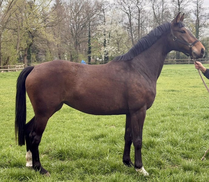 Wij bieden deze 6-jarige merrie (nog zonder naam) te koop aan, omdat we ons merriestok niet willen uitbreiden. Deze merrie is vriendelijk in de omgang op stal en op de wei, ook in een groep, maar verder heeft ze niet veel ervaring. Ze is nog rauw (ongeridden en slechts enkele keren longeer- en halsterwerk gedaan). Ze is wel halster- en hoefsmidvriendelijk en laat zich laden. Nieuwe taken moet ze rustig en geduldig aangeleerd krijgen. Een fokdoel is mogelijk. De merrie is nog nooit publiekelijk gepresenteerd. Wij zien haar als een zeer goede vrijetijdsgenoot; ze zou wel in gezelschap gehouden moeten worden. Een veterinaire keuring (AKU) is niet beschikbaar.