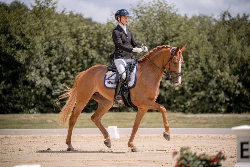 🌟 Nachwuchsstute mit Perspektive 🌟 Diese ausdrucksstarke Fuchsstute vereint Kraft, Eleganz und hervorragende Rittigkeit – ein echtes Talent für den Dressursport. Bereits in Dressurpferde A & L platziert und sicher auf dem Weg Richtung Dressurpferde M, zeigt sie ein modernes Bewegungsbild, elastische Grundgangarten und viel Leistungsbereitschaft. Trotz ihrer Power ist sie brav, klar im Kopf und angenehm zu reiten – ein echtes Ausbildungspferd für den großen Sport. Alles weitere gerne auf Anfrage! 📍 Standort: Münster (NRW)