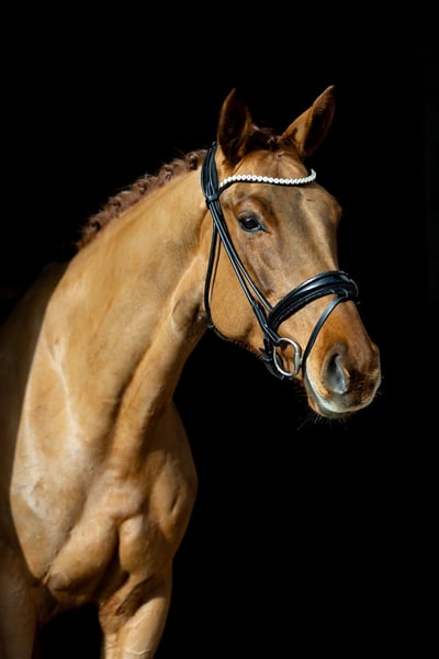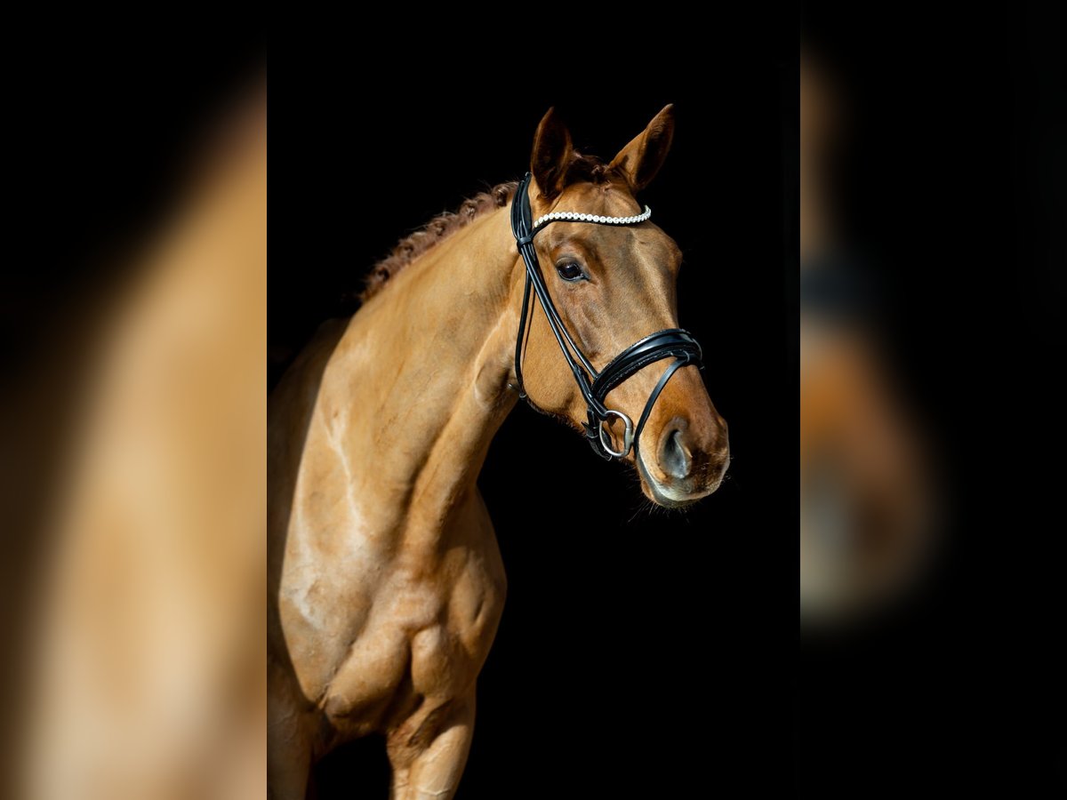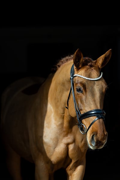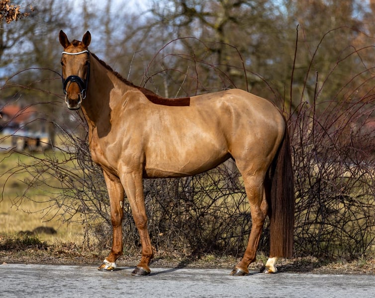 Fantastic Amber ist eine sechsjährige Dunkelfuchsstute mit Ausstrahlung, Qualität und klarer Perspektive. Bereits jetzt präsentiert sie sich als modernes Dressurpferd mit drei sehr guten Grundgangarten, natürlicher Balance und ausgeprägter Rittigkeit. Sie ist absolut unkompliziert zu reiten, geht in leichter, konstanter Anlehnung und entwickelt dabei stets einen schwungvollen, aktiven Bewegungsablauf mit deutlicher Bergauf-Tendenz. Besonders hervorzuheben ist ihre bemerkenswerte Versammlungsbereitschaft: Bereits im Galopp zeigt sie sehr gutes Lastaufnahmevermögen bei gleichzeitig stabiler Selbsthaltung. Fantastic Amber vermittelt ein sicheres, sehr angenehmes Reitgefühl. Durch ihre klare Struktur im Körper und ihre natürliche Durchlässigkeit lässt sie sich einfach regulieren und weiter fördern. Sie ist leistungsbereit, aufmerksam und arbeitet mit einer positiven Grundeinstellung. Mit einem Stockmaß von ca. 1,66 m besitzt sie eine praktikable Größe und bietet damit beste Voraussetzungen für unterschiedliche Reiterkonzepte. Sowohl ambitionierte Dressurreiter auf der Suche nach einem hochwertigen Nachwuchspferd als auch solide Reiter auf sicherem A-Niveau finden in ihr eine verlässliche, perspektivische Partnerin. Auch im täglichen Umgang überzeugt sie durch ihr unkompliziertes Wesen. Sie ist freundlich, zutraulich und sehr angenehm im Handling – ob beim Putzen, beim Schmied oder in neuen Situationen. Fantastic Amber behält stets einen klaren Kopf und zeigt sich nervenstark sowie kooperativ. Eine qualitätsvolle Nachwuchsstute mit klarer sportlicher Zukunft. Standort des Pferdes: Rosenheim