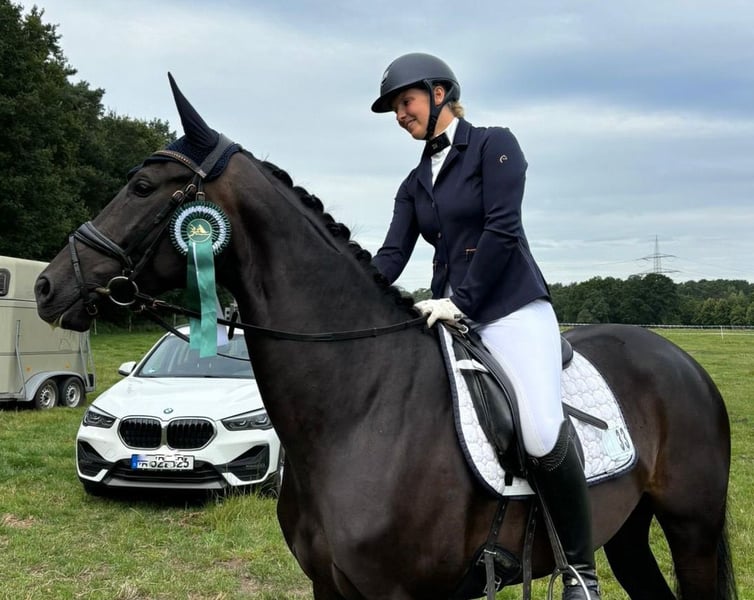 Bellissima, leggera nel movimento, tranquilla in passeggiata, vincente in gara, assolutamente educata e con un ottimo certificato veterinario – sembra troppo bello per essere vero?! In realtà, è proprio così e siamo molto orgogliosi di aver allevato questa splendida fattrice. L'abbiamo lasciata crescere serenamente e una cara amica l'ha addestrata con cura e, soprattutto, in modo versatile. Barbie è stata più volte piazzata nella scorsa stagione e ha ottenuto, tra le altre cose, il terzo posto in dressage cavalli A. Conosce le esercizi per il livello L. Siamo particolarmente orgogliosi della sua leggerezza nel movimento e del fatto che, con una sola prova di monta, una ragazza di 13 anni del nostro maneggio l'ha portata con successo al secondo posto in una prova di dressage E, quando il suo cavallo si è improvvisamente ammalato. Per questo motivo, possiamo davvero consigliarla come un ottimo cavallo di transizione. Abbiamo anche dedicato molta attenzione all'addestramento in passeggiata, perché ci interessa che i nostri cavalli siano ben addestrati e anche divertenti da portare in giro. Barbie passa ogni giorno all'aperto e si trova bene anche con gli altri cavalli. Dato che desideriamo continuare l’allevamento, ora cerchiamo una nuova scuderia per questa fantastica fattrice, dove possa essere ulteriormente valorizzata in dressage e sviluppare il suo percorso sportivo. Dalla qualità che possiede, non ci sono limiti. Per noi è importante anche un’ottima sistemazione, con pascolo quotidiano o paddock e un allenamento vario e stimolante. Se pensi che questa descrizione possa fare al caso tuo, non esitare a contattarci: organizzeremo una telefonata. Ti chiediamo di capire che invitiamo solo persone realmente interessate a provare il cavallo e con cui ci possa essere una buona sintonia da entrambe le parti. (Il video verrà inviato solo dopo la telefonata. Sono disponibili radiografie e, in caso di interesse all’acquisto, saranno fornite senza problemi.)