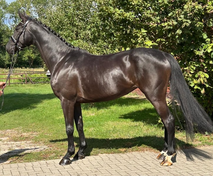 Hannoveraner Stute, geb. 2020, Rappe, mit einem Stockmaß von 167 cm – eine vielversprechende Dressurpartnerin Diese elegante Hannoveraner Stute besticht durch ihre ansprechende Erscheinung und ihr vielversprechendes Temperament. Geboren im Jahr 2020, vereint sie die typischen Qualitäten ihrer Rasse: eine solide Grundausbildung, eine gute Bewegungsentwicklung und eine ausgeprägte Lernbereitschaft. Mit einem Stockmaß von 167 cm bietet sie die ideale Größe für ambitionierte Reiterinnen und Reiter, die eine zuverlässige Dressurpartnerin suchen. Ihre rassetypische Eleganz und ihr ausgeglichener Charakter machen sie zu einer angenehmen Begleiterin im täglichen Training und auf Turnieren. Sie ist gut geritten, zeigt eine harmonische Grundausbildung und besitzt die Potenziale, sich im Dressursport weiterzuentwickeln. Dank ihres freundlichen Wesens ist sie sowohl für fortgeschrittene Reiterinnen und Reiter als auch für talentierte Nachwuchsreiter geeignet. Diese Hannoveraner Stute ist eine vielversprechende Investition für alle, die eine zuverlässige, gut ausgebildete Dressurpartnerin suchen. Sie eignet sich ebenso als Zuchtstute, 2024 hatte Sie bereits ein Fohlen, dass auf der Verdener Fohlenauktion verkauft wurde. Bei Interesse freuen wir uns auf Ihre Kontaktaufnahme, um Ihnen dieses schöne Pferd näher vorzustellen.
