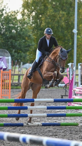 For sale from a breeder, Dahlia CD is a modern, blood-type, double-licensed chestnut mare born on February 14, 2020, of exceptional quality. Dahlia CD impresses as an elegant, movement-rich, and very rideable mare with a pleasant temperament and the right attitude towards work. She consistently presents herself as gentle, attentive, and intelligent. She is still physically developing and not yet fully mature. One of her most remarkable traits is her friendly, affectionate, and curious nature. She is completely free of bad habits such as bucking or rearing. The mare was gently backed in 2024 and has already achieved ribbons in dressage and jumping competitions at the A* and A** levels. She is currently working on L-level dressage movements. Thanks to her versatility, she performs very well across all disciplines and would also be an excellent candidate for eventing. With her character and attitude, Dahlia CD will be an ideal, reliable, and honest sport partner in the future. 📞 Please contact us for more information or to arrange a viewing. Pedigree: Sire: Dohnanyi – Winner of the Hanoverian Young Horse Championship for 3-year-old stallions in Verden – Bronze medalist at the 2017 Bundeschampionat in Warendorf Dam: Fiorella CD – Strongly double-licensed – Sensitive nature with high performance and collection willingness https://www.horsetelex.de/horses/pedigree/2130499/dahlia-cd From the successful mare line, numerous auction foals, successful sport horses, and several licensed stallions in jumping and dressage, up to international level, have been bred.