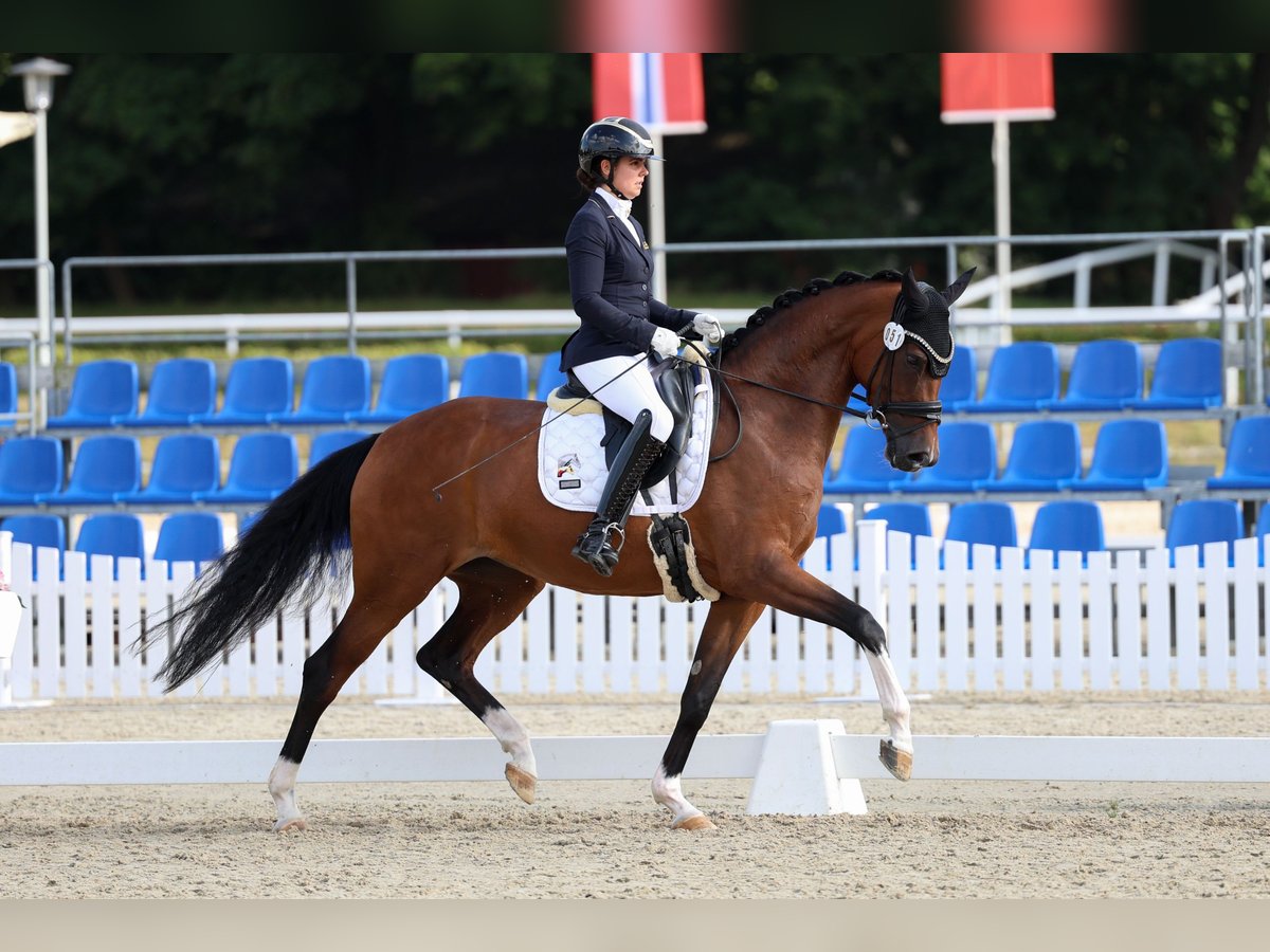 Verkauft wird aus privaten Gründen diese 6 jährige bildschöne Stute im handlichen Format, dem Herz am rechten Fleck, sowie Qualität für ganz oben. Sie konnte bereits Siege und vordere Platzierungen in Jungpferdeprüfungen in Deutschland mit Noten bis 9,0 holen und ist zudem aktuell FEI bei den 6 jährigen platziert. Aufgrund ihres unerschrockenen ehrlichen Charakters und durchweg positiver Einstellung ist sie auch bereits von Junioren/Amateuren sehr gut zu bedienen. Sie liebt Springgymnastik, Ausritte, Aquatraining sowie ihren täglichen Weidegang. Eine tolle Stute fürs Leben! Aktuell steht sie in Spanien. Gern holen wir Sie vom Flughafen ab und organisieren den Transport im Falle eines Kaufes.