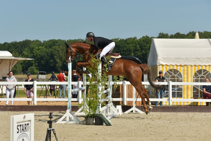 Hübsche, harmonische Stute mit einer Superbilanz:.................. Bisher 14 Turnierstarts mit 12 Platzierungen in Springpferde A und L.................. Springpferde-M ist sofort möglich............... Spät angeritten: 1. Turnier Ende Mai 2025............... Bester Charakter. Sehr freundlich und zugewandt, ausgeglichen und verschmust. Leicht zu reiten, gutes Sitzgefühl, stets in Anlehnung und konzentriert................. Mehrere turniersporterfolgreiche Halbgeschwister (u.a. zahlreiche Siege in M*/M**/S-Springen im Amateurbereich).............. Gute Röntgenbilder aus Dezember 2022............... Ca. 1,68 groß.................. Auch für die Zucht hoch interessant. Vater: Colman mit einem Springindex von 134 Top-Hengst in Holstein. Mutter: Ist Vollschwester von Asti’s Amsterdam – gekörter Hengst im Hannoveraner Springpferdeprogramm. Er hat S gesiegt und liegt mit einem Springindex von 139 auf Platz 10 in Hannover (Stand 2023)............... Kontakt: 0173 7789 708