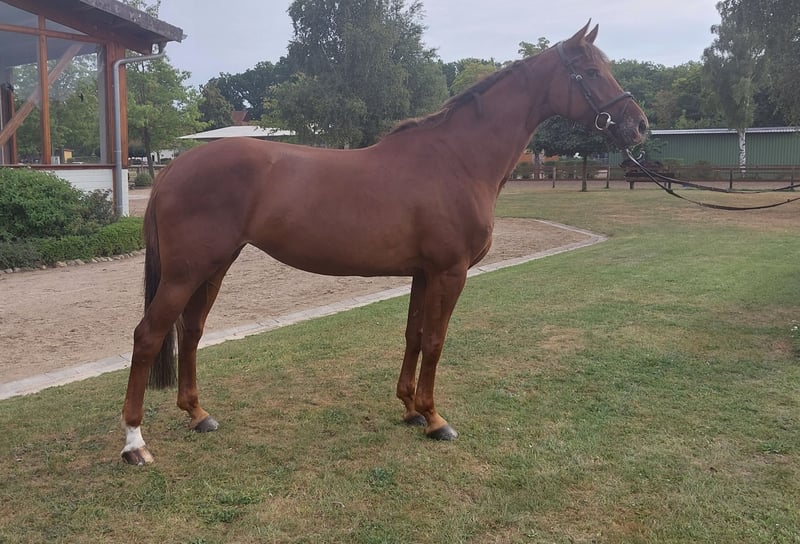 Beautiful, harmonious mare with an excellent track record: Has competed in 14 shows with 12 placements in jumping classes A and L. Immediate eligibility for 1.45 m jumping classes. Began her training late; first competition expected at the end of May 2025. Excellent temperament: very friendly and approachable, balanced, and affectionate. Easy to ride, good seat, always attentive and focused in the ring. Good X-ray results from December 2022. Approximately 16.1 hands tall. Highly interesting for breeding as well. Sire: Colman, a top Holstein stallion with a jumping index of 134. Dam: Full sister to Asti’s Amsterdam, a licensed stallion in the Hannoveraner jumping horse program. He has won S-level classes and, with a jumping index of 139, ranks 10th in Hannover (as of 2023). Contact: 0173 7789 708