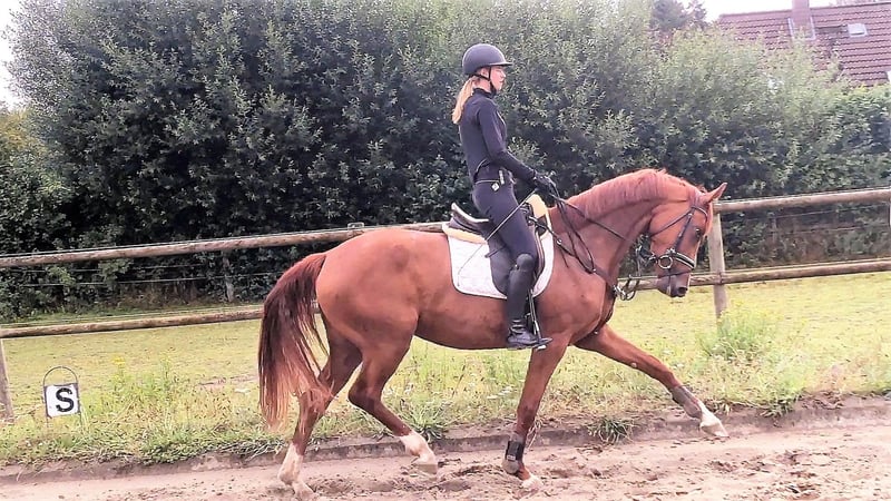 Zu verkaufen ist eine wunderschöne Hannoveraner Stute abstammend von Valverde/Sir Donnerhall/ Akzent II. Eine Stute mit viel Chic und Ausstrahlung im mittleren Rahmen stehend. Sie bringt eine deutliche Doppelveranlagung mit. Das Talent zum Springen ist im Mutterstamm verankert. Zudem verfügt sie über drei gute Grundgangarten. Ihr Trab ist geprägt von einer tollen Vorderhandmechanik und sehr aktiver Hinterhandmechanik. Der Galopp ist aktiv im Durchsprung. Der Schritt ist geregelt. Sie verfügt über Intelligenz, Sensibilität und ist sehr menschenbezogen. Leider wurde sie aus Zeitgründen nur in den Sommermonaten sporadisch geritten. Das ist auch der Grund, weshalb wir diese tolle Stute nun preisgünstig abgeben wollen. Aus dem direkten Mutterstamm gehen mehrere Grand Prix Pferde und gekörte Hengste hervor. Die Mutter war Klassensiegerin auf der Schau und drittplatziert in der Stutenleistungsprüfung, wobei auch sie eine deutliche beidseitige Veranlagung erkennen lässt. Aus der Vollschwester zur Mutter geht der aktuell im Grand Prix/ Grand Prix Special, auch international hoch platzierte Fürst Enno (Fürst Romancier/ Sir Donnerhall) hervor. Die Großmutter "Wiener Melange" brachte den gekörten und zugleich Grand Prix platzierten Redefiner Landbeschäler "Don Akzentus" von Donnerhall/ Akzent II. Sein Vollbruder "Donatello van de Helle" von Donnerhall/ Akzent II war Teilnehmer an der Weltmeisterschaft der 5j. Dressurpferde. Ein weiterer Sohn "Barrymore" von Belissimo M/ Akzent II ist mehrfach Grand Prix platziert. Direkt vom Züchter! Standort ist 22946 Hohenfelde!! Videos: https://youtu.be/y7MtHMGyqXA 2,5j. Stute https://www.youtube.com/watch?v=tdEdIRD57hw angeritten