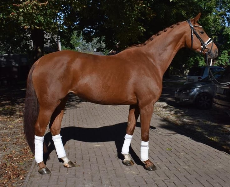 Sehr sympathische Stute mit freundlichem Gesicht. Sie hat sehr gute Bewegungen gepaart mit 1a Charakter. Sie präsentiert sich leichtrittig, unkompliziert und ist perfekt sowohl für Amateur und Jugendliche als auch für ambitionierte Turnierreiter geeignet. Sie lernt schnell und ist sehr arbeitswillig. Auch für Zucht ist Etoscha bestens geeinet. Sie hat tolle Abstammung, aus dem niederländischen Mutterstamm stammt das Erfolgspferd von Günther Seidel, Zero Gravity v. Royal Hit. Die beiden vertraten die US-amerikanischen Farben unter anderem bei Weltcup-Finals. Probereiten jederzeit nach Absprache möglich.Mehr Infos und Video finden Sie auf unserer Homepage. Hof Heisterbusch Team.