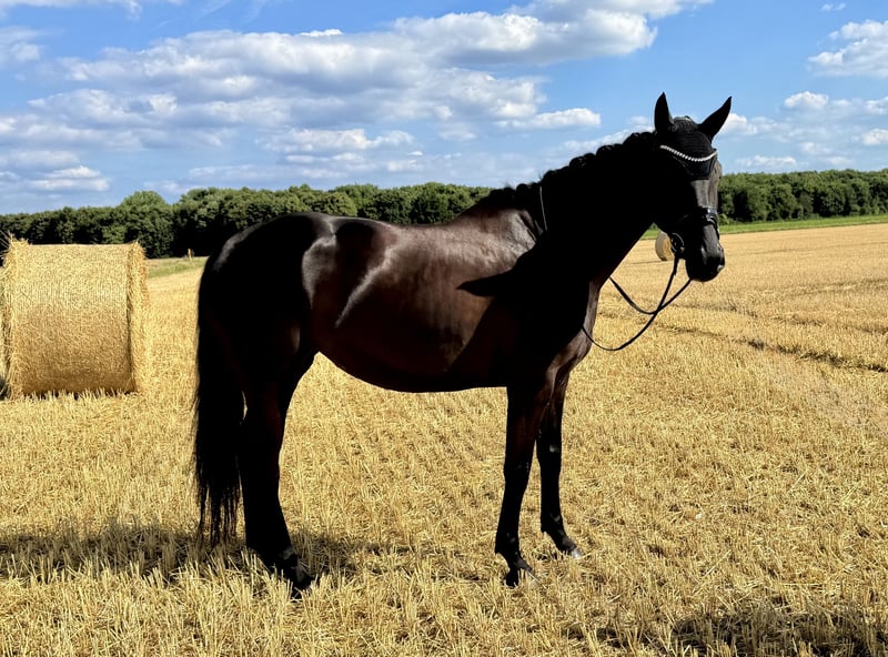 Top opportunity! This mare, descended from Le Formidable x Don Frederico, is not only beautiful but also brings quality. Lisa presents herself with a black jacket and plenty of coolness. She impresses in all three basic gaits – walk, trot, and canter – with quality and clarity. This compact, typey mare captivates with her outstanding charisma! With her consistently active hind leg, she brings the ideal prerequisites for successful further training. She already shows herself as a rounded and well-built horse with a lot of presence and charm. At 5 years old, she is completely unspoiled and in the best age! In her first competition start in the Dressage Class A, she was able to place directly in 3rd place with a score of 7.8. Currently placed in Dressage A! Of course, she is loading and farrier friendly (4x shod). I bought her directly from the breeder back then – she is not a trophy horse. At that time, she was already vetted – this was without any issues.