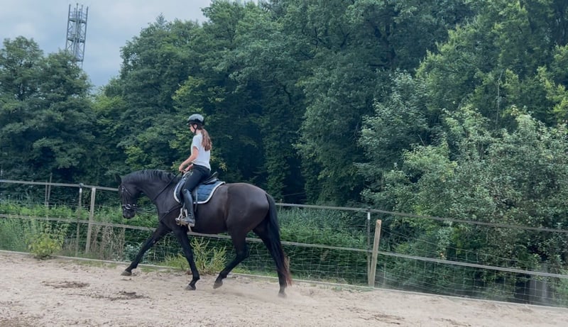 Bellina is my 6-year-old tall, dressage-bred mare with excellent riding comfort. "Bella" is a very people-oriented, friendly, and fearless horse. She has been started slowly and calmly. So far, she has been worked in the arena as well as out on trails. Due to her lineage, she was supposed to be my dressage prospect, but unfortunately, I have to part with her due to a lack of time. Currently, she is in a mixed open stable herd and gets along very well with all other horses.