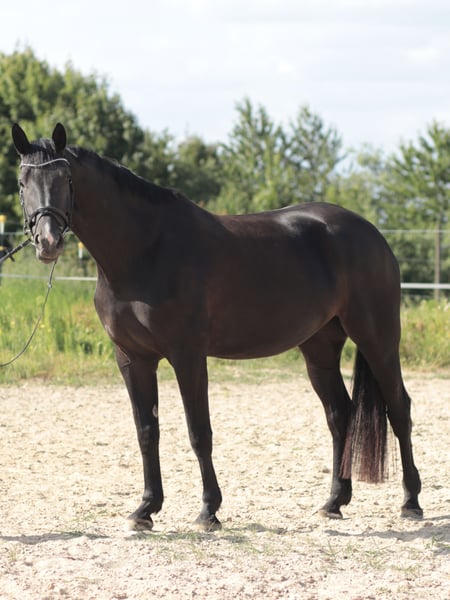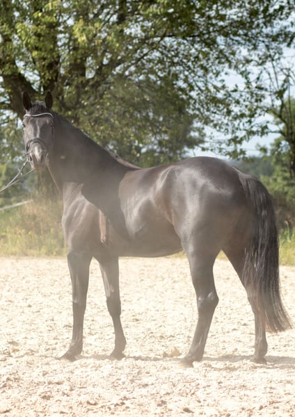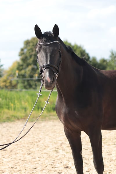 A fantastic young prospect with great potential for further training. Although this young black mare has not yet been shown in competitions, she is already attracting attention. Viscora is 5 years old and descends from Viscerado x Stalypso. She measures approximately 17.2 hh and has been lightly backed due to her growth, and she has been progressing with patience and calmness. She is still at the beginning of her training as a show jumper. She impresses with her size, presence, and quality! She is solidly trained in dressage and consistently shows motivation and a willingness to learn. Viscora is delicate and extremely pleasant to ride. A promising, sensitive young mare for further sporting endeavors. A horse that simply brings joy and inspires hope for a wonderful future together. She is accustomed to training in unfamiliar environments but needs some time to settle in fully. With her very sensitive and somewhat reserved nature, she requires an experienced, empathetic rider who can provide her with security. Ideal for riders seeking a young horse to develop and grow together. The mare is unspoiled and possesses excellent potential for her future sporting career. Viscora is ready for an ambitious show jumper—preferably in caring, supportive hands! This wonderful Hanoverian mare is now looking for a suitable home where she can be further developed and showcase her qualities. Additional videos available upon request!