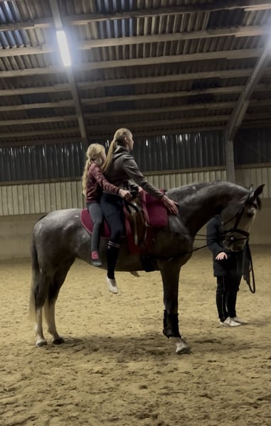 Te koop staat de 6-jarige merrie Dorie Sue dG, een getalenteerd springpaard met een uitzonderlijk goed karakter. De merrie overtuigt door haar innerlijke rust en haar hoge betrouwbaarheid tijdens het springen. Ze toont zich altijd evenwichtig, eerlijk en geconcentreerd in haar werk. Dankzij haar unieke karakter is ze zowel geschikt voor ambitieuze jonge ruiters als voor ervaren amazones en ruiters. Ook in het terrein is ze een echte levensverzekering. Afstamming: Vader: Diamant de Semilly × Le Tôt de Semilly Moeder: Périgueux × Perpignon De merrie heeft een stokmaat van ongeveer 1,74 m en biedt daarmee vertrouwen aan elke ruiter. Een recente keuring is aanwezig. Bij serieuze interesse sturen wij graag meer informatie en video's toe. We kijken uit naar uw bericht. Meer paarden op aanvraag.