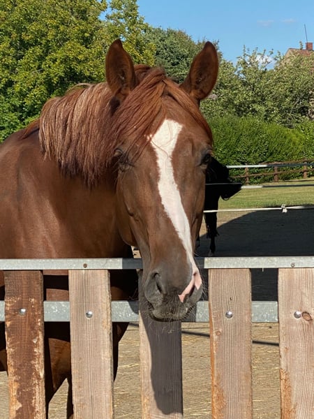 Due to a pasture injury, we are selling our Floriscount x Alabaster mare. The 1.76 m tall mare impresses with her appearance and three excellent basic gaits. She is very compatible with other horses, easy to handle, and has been willing and rideable during her training. Due to the injury, she will likely not withstand the demands of a dressage horse up to the advanced level. Therefore, we are offering her as a breeding mare. Price: 5,000 euros. For further questions, please call 01755957724 after 2:00 PM.