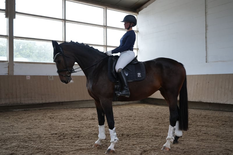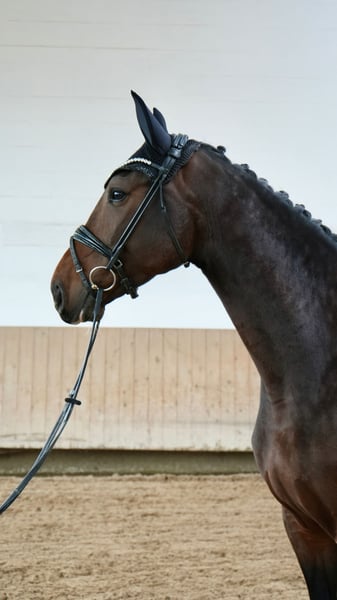 We are selling our beautiful 5-year-old bay Hanoverian mare by Class de Luxe x Toronto, standing at 16.1 hh. The mare has been gently backed and has been consistently trained with patience and calmness. She always remains well-behaved, brave, and eager to learn—an attentive partner who aims to please her rider. In handling, she is completely straightforward: shoe- and trailer-friendly, good with mares and geldings, and easy to manage in daily care. Under saddle, she impresses with her rideability, clear mind, and excellent basic gaits. This mare is unspoiled, possesses outstanding potential for further sporting development, and is suitable for ambitious riders looking for a young horse for the future, as well as for riders transitioning from other disciplines or amateurs seeking an honest and reliable partner. She is also well-suited for children to ride. This wonderful Hanoverian mare is now looking for a suitable home where she can be further developed and showcase her qualities. Current X-rays are available for viewing. We look forward to your inquiry.