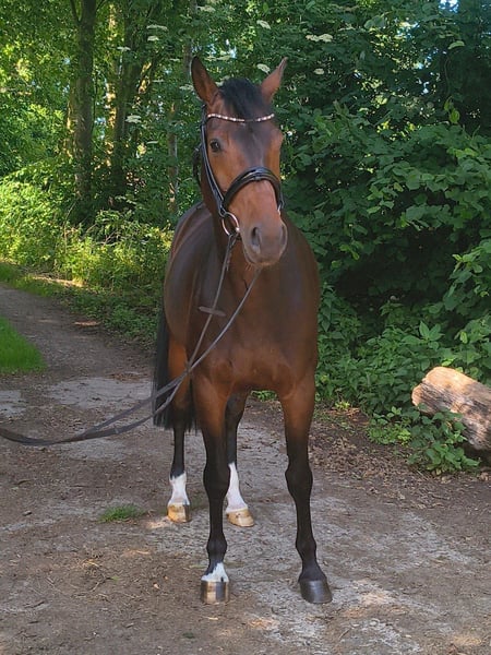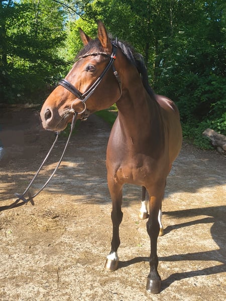 Casmira is a truly special horse with an equally extraordinary presence! She comes directly from the breeder and has been carefully trained due to limited time. Casmira is confidently ridden in all three gaits, is familiar with small jumps under saddle, and can perform flying changes in the show jumping course. She requires a rider with a gentle hand. When free jumping, she demonstrates great talent, agility, quick reflexes, and excellent awareness. In 2022, she impressed with good results at the free jumping competition in Verden. Otherwise, she has not been publicly presented. Her dam, State Premium Mare Europa, has produced numerous successful offspring in show jumping up to 1.40 m and herself achieved an outstanding mare performance test. Casmira grew up on our extensive marshy pastures within a large herd and is well socialized. She is uncomplicated in handling. She is familiar with agricultural machinery, cattle, chickens, and dogs. She is curious and interested in her environment. If interested, I am happy to provide further information and arrange a viewing. Please contact me to learn more about this promising mare!