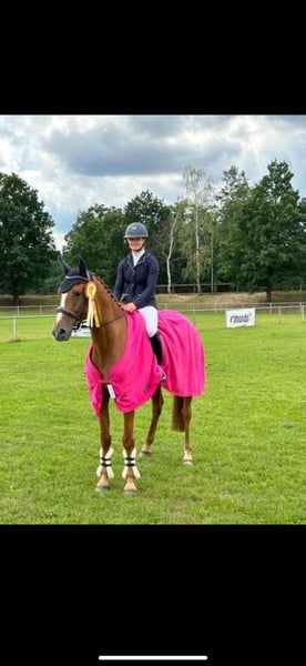 Ta wysokiej jakości klacz Perigueux przekonuje swoim talentem, charakterem i sportową konsekwencją. Ze względu na jej ponadprzeciętny talent sportowy zostaje sprzedana – podczas gdy jej matka świadomie pozostaje w hodowli. Już jako 4-letnia była plasowana w konkursach skoków w klasie L. W sezonie 2024 podczas swojego pierwszego startu osiągnęła oceny 8,4 i 8,7, będąc jedyną 5-latką, która bezpośrednio awansowała do konkursów skoków M. Obecnie mająca 6 lat, odnosi sukcesy do 115 cm, a w konkursach 120 cm wielokrotnie bezbłędnie kończyła przejazdy. Na prestiżowych Hannoveraner Masters pokazała swoje ponadprzeciętne możliwości, szybkie refleksy i doskonałą orientację na przeszkodach. Klacz ma wystarczająco energii, wyraźny galop i uczciwy, ambitny charakter – myśli samodzielnie i zawsze chce dojść do drugiej strony. To nowoczesny koń sportowy z perspektywami na wyższe zadania. Wywodzi się z bardzo utytułowanej linii matczynej Nagillata, matka sama była plasowana w S. Pozycja genetyczna tego lineu pozostaje nienaruszona, ponieważ matka nadal bierze udział w hodowli. Dane techniczne: • Rodowód: Perigueux x Quadam x Escudo • Wzrost: ok. 163 cm • Doskonały TÜV • VAT odliczalny 💶 Cena: 29 000 € 📍 Lokalizacja: 38154