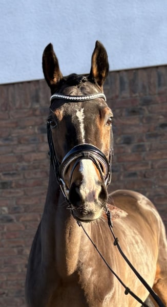 Typey mare with three very good basic gaits and excellent rideability. At five years old, she already won Dressage Horse A and has been placed multiple times in L. When she was about to be sold, she was diagnosed with spavin and two chips. Clinically, she has always been unremarkable. Since the owner was pregnant at the time, the mare was only lightly ridden for nearly a year, mainly for leisure. She is also familiar with pole work and hacking. Bavaria moves easily on the bit, is comfortable to sit, and has a pleasant go. She is now back in professional training, working on the movements of class M. Her full sister, who is one year older, is already successful at M level and placed in M**. Current X-ray images are available.