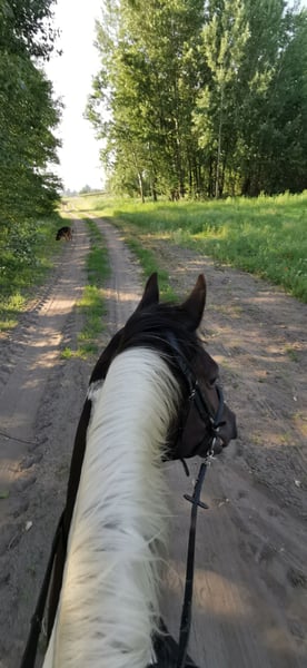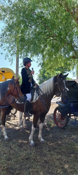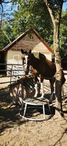 Hallo Leute, ich bin "My little Magic", aber ihr dürft mich Pinti nennen! Ich bin eine 6jährige hübsche, junge Dame und suche eine neue Partnerin in meinem Sattel. Seit Fohlen an lebe ich bei meiner aktuellen Besitzerin, die mich schonend, mit viel Feingeühl und Fachkenntnis ausgebildet und auf die vielen Seiten des Pferdelebens in der großen weiten Welt vorbereitet hat. Nun bin ich so weit, die "Kinderstube" zu verlassen und suche dafür den passenden Menschen. Damit ihr wisst, ob ihr zu mir passt, erzähle ich euch einfach über mich. Meine Mama ist eine Dressur-Hannoveranerstute die auf Wenzel zurück geht. Meine Besitzerin sagt, da habe ich meine tollen, federnden Gänge her. Mein Papa ist ein Paint Horse, von dem ich die gescheckte Farbe und auch mein Gemüt der "coolen Socke" geerbt habe. Ich liebe den Menschen und freue mich, viel Zeit mit dir zu verbringen. Ich kann ganz viele tolle Tricks und begrüße dich gerne jeden Morgen mit einer Verbeugung. Danach gerne auch ein paar Küsschen. Da frage ich aber, ob du das magst - ich habe auch gelernt, dass nicht jeder das möchte und das respektiere ich natürlich auch! Zuhause lebe ich im Offenstall in einer Mädelsgruppe und genieße im Sommer die Weide. Wenn du mich rufst, komme ich immer gerne - wenn ich mir den Bauch nicht zu voll gefressen habe, auch im vollen Galopp wie im Film. In meiner Kinderzeit habe ich die Welt immer mit einem erfahrenen Pferd erkunden dürfen und gelernt, dass es nichts gibt, wovor ich mich fürchten müsste. Da wir hier auch manchmal junge oder erschrockene Pferde habe nimmt meine Besitzerin die gerne auf unsere Ausflüge mit, damit ich denen zeigen kann, dass Verkehr (auch Trecker, Erntemaschinen), plötzlich aufspringende Wildtiere, Gräben, Hänge oder ein See nichts ist, wovor man Angst haben muss. Auch wenn die anderen Pferde mal Umherspringen, lass ich mich davon nicht beeindrucken. Dieses Jahr war ich sogar bei einem ganz wichtigen Besuch vor dem Parlament. Da ging es durch die Innenstadt, vorbei an Straßenbahnen, Bussen, Schiffen und quer durch die Fußgängerzone. Apropos See, ich liebe es im Sommer dort schwimmen zu gehen, ich bin ein echtes Seepferdchen. Das ist nach einem langen und gerne auch mal schnellen Ausritt genau das Richtige. Wenn du mit mir am langen Zügel durchs Gelände bummeln möchtst, ist das super, aber über einen flotten Galopp, egal ob alleine oder in der Gruppe, freue ich mich immer. Ich habe nämlich eine super Grundkondition. So nun aber zu dem, was mich und den Menschen den ich Suche besonders macht: Dass ich gut aussehend, wohlerzogen und charmant bin, brauche ich nicht nochmal zu betonen. Ich habe gute Nerven, bin aber keine Schalftablette. Ich bin jung und dynamisch mit einem butterweichen Ganz zum sitzen. Traben ist wie auf Wölkchen sitzen sagt meine Reiterin =D Wenn auch mal fremde Reiter auf meinem Rücken sitzen, gebe ich mir immer größte Mühe zu verstehen, was sie von mir möchten. Was mich aber wirklich besonders macht, ist was ich alles kann und gelernt habe. Da sagen alle, es gibt kein zweites Pferd, dass so vielseitig ist. Das macht mich natürlich besonders stolz! Als ich zu jung zum reiten war, habe ich immer den anderen Pferden bei der Freiheitsdressur zugesehen und wenn ich zeigleich auf dem Platz spielen durfte, habe ich mich immer mit eingereiht. Daher waren meine ersten Auswärts-Ausflüge Showauftritte mit meiner Herde. Ich war so mutig, dass ich mich sogar vor meinem ersten Publikum direkt hingelegt habe. Die Leute finden mich klasse und ich liebe es, vor Publikum zu stehen! Da habe ich viele tolle Erinnerungen. Licht, Show, Action ist mein Motto. So habe ich die erste Turnierluft geschnuppert, bevor ich mit 4 überhaupt unter den Sattel kam. Da ich nicht angeben wollte, bevor ihr mich ein bisschen kennt, erzähle ich euch jetzt, wo ich in den letzten 12 Monaten alles Schleifen und Pokale gewonnen habe: Dressur: mehrere Siege in A, L und Dressurpferde L, fliegende Wechsel kann ich schon und freue mich nächstes Jahr auf meine ersten Starts in M. Working Equitation: A, L* & L** (fliegende Wechsel im Trailparcours) & Garrocha Arbeit Western: Vize auf dem Finale der Landesmeisterschaft im Trail; Sieg Trail in Hand und Cowboy Challenge (Rinder treiben, Lasso werfen etc.) Rinder: Rinderarbeit einzeln und Team Penning (Kühe finde ich eine super Sache. Das muss mir keiner was erklären, ich weiß was ich zu tun habe!) Springen: mein erstes Parcoursspringen habe ich im Stil direkt gewonnen. Es war zwar nur ein E, aber meine Besitzerin meinte, das würde für den Anfang reichen. Ich fand die Sprünge schon fast zu einfach, aber ich habe mich gut konzentriert und mit viel Übersicht den Parcours bewältigt. Vielseitigkeit: da wir schon bei einer vielseitigen Ausbildung sind, darf natürlich die Vielseitigkeit bzw das Geländespringen nicht fehlen. Auch da habe ich mich erfolgreich bewährt. Aus meinem Alltag bei den Ausritten stehen wir häufig vor größeren Herausforderungen, was Wasser, Gräben und Wälle angeht. Naja auf jeden Fall habe ich auch da direkt eine super Figur gemacht. Und welches Pferd kann von sich schon behaupten, dass es in so vielen Disziplinen Erfolg hat?! Das Beste ist, es macht mir auch alles total viel Spaß! Ganz stolz bin ich, dass ich auch die Arbeit der Hohen Schule lerne. So kenne ich sogar Pilaren. Dort soll ich auch bald piaffieren. Piaffe und Passage kann ich schon so und auch schon mit dir im Sattel. Das mache ich total gerne und auf ganz leichte Hilfen. Da heißt es hinsetzten und genießen. Sobald du mir das Zeichen gibst, gehen wir im Trab oder geregelten Schritt weiter. Also, wenn du jemand bist, der mit mir die ganze Vielfalt der Pferdewelt erleben möchtest, bist du genau das wonach ich suche! Und wenn du dir bei dem ein oder anderen auch unsicher bist, kein Problem, ich passe auf dich auf und nehme dich mit. Außerdem bin ich ja so vielseitig, da finden wir was, was uns beiden Spaß macht! Ausritte. Zirzensi