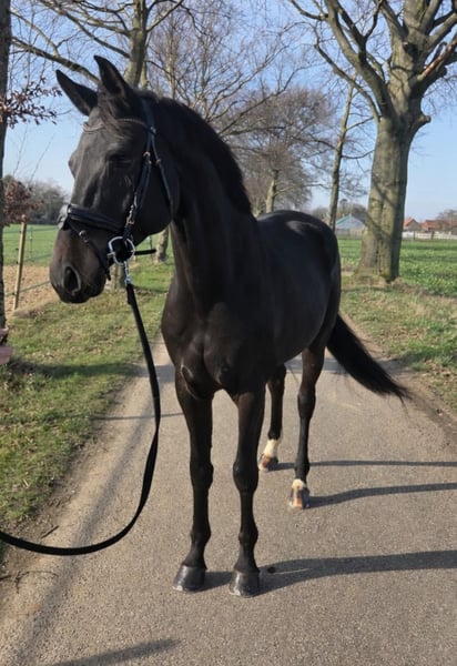 Femme Fatale V. Feinrich • Mare • 16.1 hh • No stable vices • Correctly schooled • Owned by the breeder Femme is a beautiful mare that is easy and reliable to handle under saddle and possesses a powerful canter. She has also been extensively ridden in the forest in the past. She participated with us in a training competition and won the L-level class with excellent scores. We would love to see her in the hands of an experienced rider. Video available upon request
