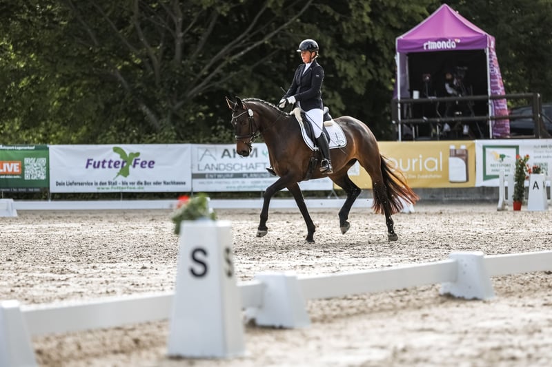 Offriamo la nostra eccezionale puledra di 6 anni, Exceptional, in vendita – un vero prodotto della nostra scuderia con ottime prospettive sportive e un importante background genealogico. Exceptional è alta circa 1,68 m, di colore baio scuro, elegante nell’aspetto e si muove con qualità eccezionale: il suo trotto è elastico e ritmato, il galoppo potente e ben equilibrato – movimenti che lasciano il segno anche in arena. In allenamento dall’inizio dell’anno, si presenta molto sciolta, desiderosa di imparare e con il giusto grado di sensibilità. Ha più volte ottenuto piazzamenti nelle prove di dressage di classe A, e la sua vittoria in una prova di livello superiore ne ha confermato la preparazione per la prossima categoria. Pedigree: Exceptional proviene dalla nostra linea di allevamento: il padre è Escamillo, stallone di grande richiesta a livello internazionale, anch’egli nato nella nostra scuderia, e la madre è una figlia di Destano. Questo le conferisce le migliori premesse genetiche per il dressage moderno. Ha già dimostrato il suo valore anche in ambito di allevamento. Dati principali: - Nome: Exceptional - Età: 6 anni - Altezza: circa 1,68 m - Colore: baio scuro - Livello di allenamento: L-Dressage - Pedigree: da Escamillo – Destano (entrambi i genitori di nostra produzione) Exceptional rappresenta un’opportunità speciale per cavalieri ambiziosi che desiderano portare in sport un giovane di qualità con prospettive future. Per interessati seriamente, saremo lieti di ricevere il vostro contatto. Ulteriori informazioni, foto e video sono disponibili su richiesta.