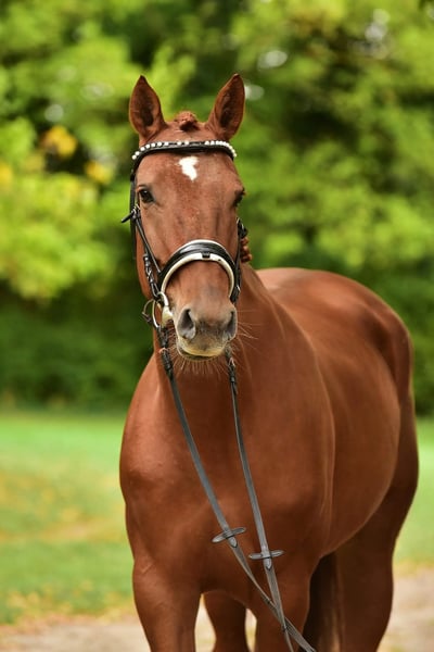 Elegant Hanoverian mare for sale – ideal for show jumping riders! This beautiful chestnut Hanoverian mare was foaled in 2019 and impresses with her striking appearance and excellent jumping ability. Standing at 16.9 hh, she is a remarkable partner, convincing both through her size and her strong character. She has a solid basic training in jumping and shows great potential for competition or ambitious leisure riding. Her friendly nature and eagerness to learn make her a delightful companion. If you are interested or would like more information, please feel free to contact me. Get in touch to learn more about this talented jumping mare!