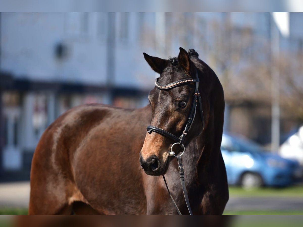 🏵️🌹 ROSE 🌹🏵️ Geschlecht: Stute Alter: 2019 Geboren Farbe: Braun Stockmaß: ca. 170 cm Zuchtverband: Hannoveraner Abstammung: V: For Dance TÜV: gute Röntgenbilder vorhanden Rücken und Beine Äußerst qualitätsvolle 7-jährige Stute mit einem Stockmaß von ca. 1,70 m. Sie überzeugt mit herausragender Rittigkeit, feiner, leichter Anlehnung und einem außergewöhnlich weichen Sitzgefühl. Besonders bemerkenswert: Sie ist auf Trense ebenso schön zu reiten wie auf Kandare. Charakterlich präsentiert sie sich als sehr lieb, unkompliziert und angenehm im täglichen Umgang, nicht kuckig und unkompliziert sowie auch im Gelände brav. Damit ist er ein ideales Pferd für Children, Junioren, Amateure und ebenso ein ausgesprochen attraktives Damenpferd. Ausbildungsstand ist derzeit auf dem sicheren M Level. Gleichzeitig steht sie voll in der Entwicklung und wird schonend und mit Blick auf eine langfristig erfolgreiche Karriere weiter ausgebildet. Alles deutet darauf hin, dass sie sich zu einem absolut lektionssicheren kleinen Tourpferd entwickeln wird. Da sich das Pferd weiterhin in sportlicher Förderung befindet, weisen wir darauf hin, dass der Preis bei weiteren nachweisbaren Erfolgen in Richtung S-Dressur entsprechend angepasst wird. Bei ernsthaften Interesse freuen wir uns über eine Kontaktaufnahme. +4917640177894