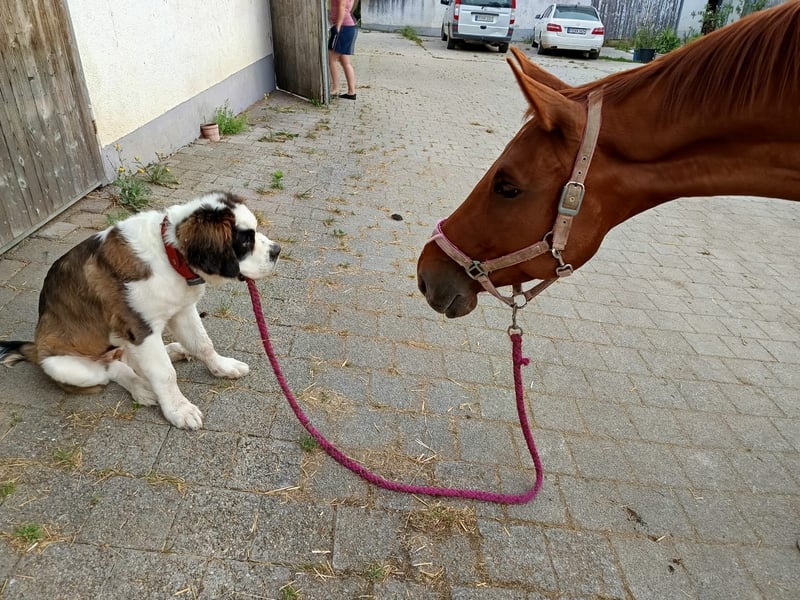 À vendre, une jument de grande taille, peu utilisée, qui a été montée pour la première fois à l'âge de 5 ans en raison de circonstances personnelles. Elle possède des allures au-dessus de la moyenne avec un bon trot, un bon pas et un bon galop, et se montre très désireuse d'apprendre lors de l'entraînement quotidien. Karla connaît le travail à la longe, le tapis roulant, les promenades en extérieur (même seule), le saut en liberté, ainsi que la monte en manège et en extérieur. Des radiographies récentes des membres sont disponibles - sans constatations. Elle est avec nous sur l'établissement depuis août 2024 et a toujours été en excellente condition physique. Actuellement, elle est dans un box avec sortie quotidienne au pré. Elle a grandi en troupeau dans un paddock 24/7. Nous souhaiterions pour elle un foyer 5 étoiles, où elle sera continuellement encouragée et pourra trouver son humain. En raison de sa lignée, elle serait également intéressante pour la reproduction.