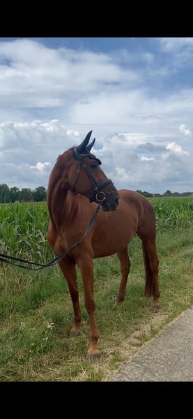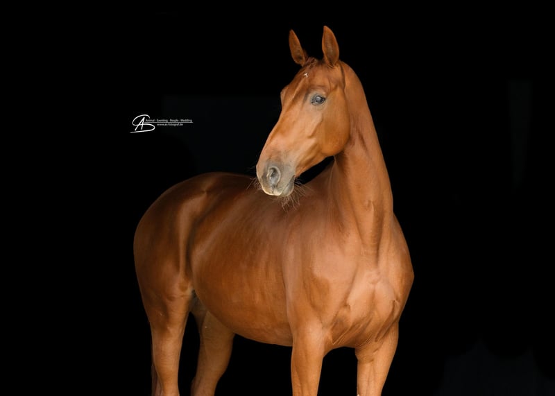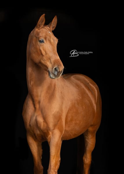 For sale is a large-framed, unused mare, who was only started under saddle at the age of 5 due to personal circumstances. She is equipped with 3 above-average gaits and shows a very willing attitude in daily training. Karla is familiar with lunging, the horse walker, going for walks in the terrain (even alone), free jumping, and riding in the indoor arena and outdoor arena. Current X-rays of her legs are available - with no findings. She has been with us on the premises since August 2024 and has always been in top condition. Currently, she is in a box with daily turnout. She was raised in a herd environment on pasture 24/7. We would wish for a 5-star home for her, where she will continue to be developed and find her person. Due to her lineage, she would also be interesting for breeding.