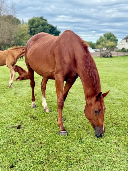 La jument a été montée à l'âge de 4/5 ans et a été formée jusqu'au niveau des chevaux de selle. Elle possède d'excellentes allures, un tempérament sportif et de l'ambition ! Sa mère, tout comme l'ensemble de sa lignée maternelle, a déjà produit de nombreux poulains de vente aux enchères, chevaux de sport et étalons approuvés. Sa propre capacité de reproduction a été démontrée cette année en produisant un poulain de prix, typique et doté d'un bon mouvement.