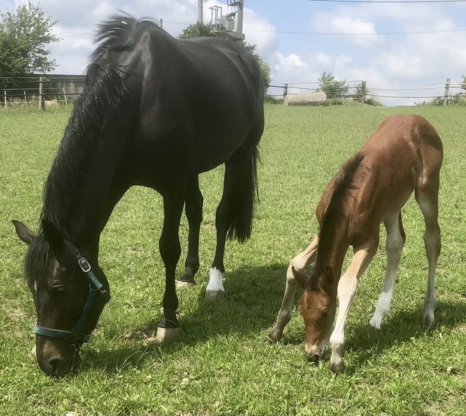 À vendre, une magnifique jument issue d'une lignée de premier ordre. **Caractéristiques :** - **Race :** Hanoverienne, inscrite auprès de l'Association de l’élevage de sauteurs d’Oldenburg International - **Sexe :** Jument - **Année de naissance :** 2019 - **Couleur :** Bai foncé - **Taille :** 1,70 m Cette superbe jument séduit par sa silhouette harmonieuse, ses mouvements élégants et ses premiers poulains prometteurs. Elle possède une double aptitude, tant par son père Conteur que par son grand-père maternel Aljano. Elle peut se déplacer avec aisance, bien qu’elle ait jusqu’à présent été appariée avec des étalons de saut d’obstacles, ce qui lui a permis de nous offrir une magnifique pouliche par Dinken (visible sur les photos). Pour 2026, elle est assurément pleine de Vagabond (de Vagabond de la Pomme x C- Indoctro, station d’étalons Sosath). Elle a toujours été saillie du premier coup, avec une gestation et une naissance sans complication, et elle est une mère exemplaire. Son pedigree, son extérieur et son tempérament en font également une candidate intéressante comme cheval de selle, bien qu’elle soit encore au stade de la croissance en raison de ses origines de reproduction. Pour toute question ou davantage d’informations, je reste à votre disposition.