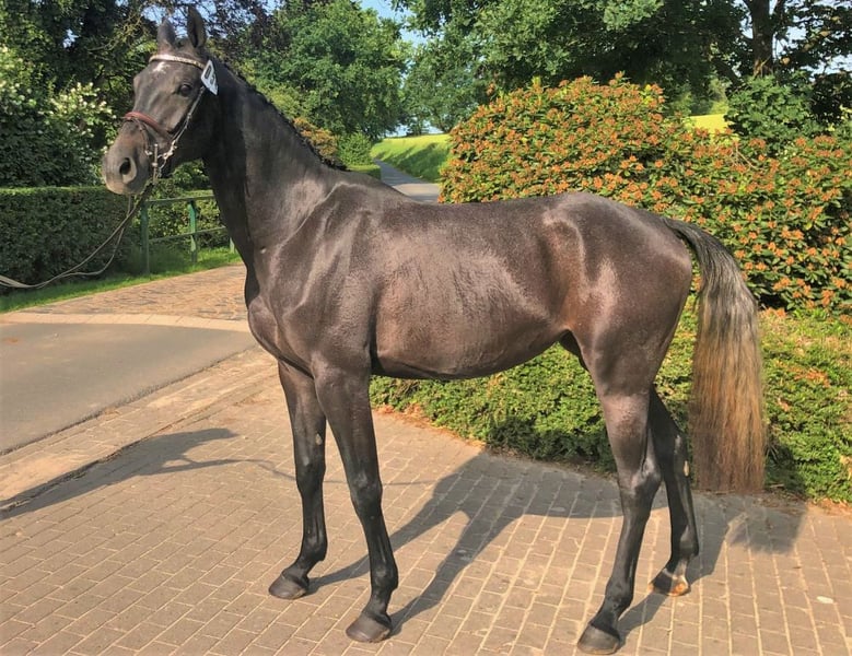 Cleopatra is a large-framed, expressive Cornet Obolenski daughter from a highly successful, old Hanoverian dam line. Her granddam Waleska by Watzmann is a 3/4 sister of the Olympic champion Walzerkönig (Franke Sloothaak). She is a full sister to the AES-licensed Cornets Acorado, who breeds in Holland. Her beautiful face and correct, stable foundation are outstanding. Her character is friendly and socially acceptable. She passed the Hanoverian broodmare test at the age of 3 and produced a foal at the age of 4 (by Meganus PS). After weaning, she was broken in again, goes easily in all three basic gaits and can already do individual jumps under the rider. She has been examined and x-rayed by a vet and has been awarded the "Vet+" health premium by the Hanoverian Verband.