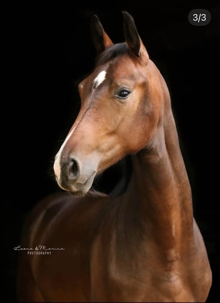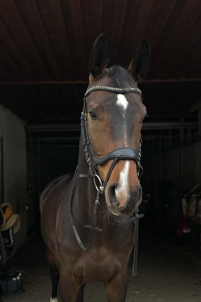 Ferrera ist eine 7 jährige Stute vom Bewegungsvererber Foundation aus einer Royal Classic x Sandro Hit Mutter. Sie ist ein unwahrscheinliches Kraftpaket und besticht durch ihre 3 hervorragenden Grundgangarten, welche immer im Takt und mit viel Raumgriff ausgestattet sind - ein echter Hingucker! Ferrera wurde aufgrund ihrer Größe recht spät angeritten und befindet sich derzeit auf einem soliden A Niveau auf dem Weg zur Klasse L. Letztes Jahr ging sie eine Dressurpferde A und war direkt 3. Platz. Hier war sie äußerst anständig und brav. Sie ist ein echter Rohdiamant, der mit dem richtigen Reiter im Viereck mit Sicherheit sehr weit kommen kann. Ferrera sucht sich ihren Reiter jedoch selbst aus: Sie ist sehr sensibel und kommt mit nervösen, hippeligen oder klemmigen Reitern nicht zurecht. Bei ausreichend erfahrenen Reitern die ihr mit ausreichend Autorität, Ruhe, Konsequenz und Feingefühl begegnen, läuft sie tadellos und bereitet wirklich große Freude und wartet darauf gefordert zu werden. Es braucht einen Reiter der versteht, dass wenn das Bein aufgeht, das Pferd nach vorne geht und nicht mit Druck versucht das Pferd in Gang zu bringen. Ansonsten macht sie auch mal einen Sprung und ist im Gelände super unerschrocken und cool. Sie ist Schmiede- und verladefromm und herdenverträglich. Röntgenbilder liegen vor inkl. Rücken. Alles in Ordnung bis auf ein Überbein am Vorderbein, was sie nun seit einem Jahr ohne Beeinträchtigung hat. Regelmäßig geimpft und entwurmt. Ferrera geht nur an einen Bestplatz.