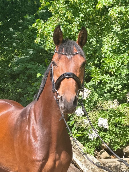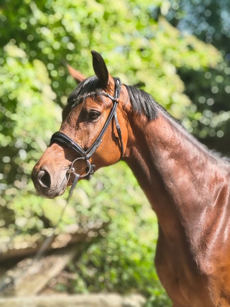 Elegant Hanoverian mare of Arab type seeking her person! Carlitta is a highly charming, blood-type mare in a small size. She is confidently ridden in all three gaits and responds delicately to rider aids. In free jumping, she demonstrates great talent, excellent manners, and quick reflexes. Under saddle, she is familiar with small jumps but is still in the early stages of training. She is ideal for ambitious young riders or small adults with some experience with young horses. Additionally, she knows ground work and is very trainable, reacting subtly to human signals. This beautiful bay mare was saddled late due to time constraints and has not yet been publicly presented. Carlitta is familiar with farm machinery, cows, chickens, and dogs. She is curious and interested in her environment. Her dam received two scores of "10" for her manners and ability in show jumping during her performance test. A half-brother is highly successful in eventing in Great Britain, placed up to 4*, and notably victorious in the Boekelo Nations Cup 2025. Carlitta is available directly from the breeder. She grew up on extensive marsh pastures in a large herd and is well socialized. Please contact me for further information and to arrange a viewing. Feel free to reach out to learn more about this promising horse!