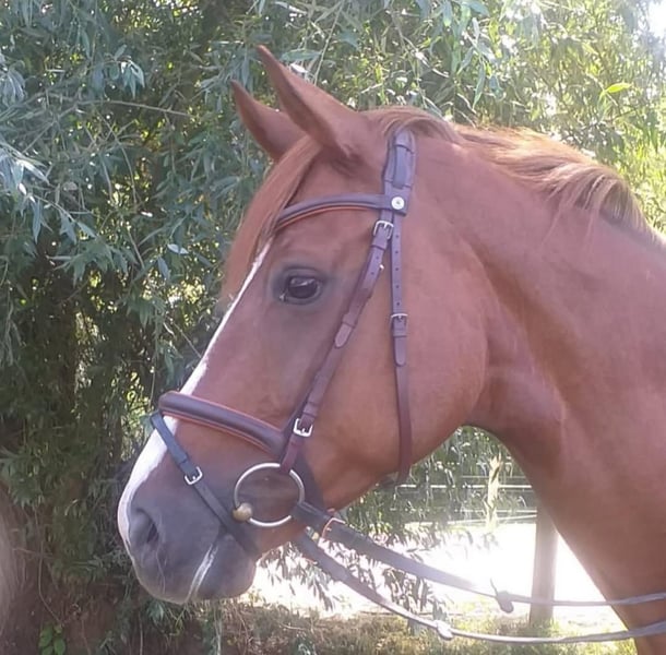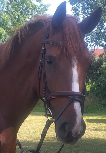 For sale is a beautiful dark chestnut mare, born in 2017. With a height of 16.1 hands (164 cm), she is the ideal leisure partner for riders of all ages. This mare impresses not only with her friendly and open nature but also with her versatile capabilities in recreational riding. She is well-trained and suitable for relaxed trail rides as well as for smaller dressage and pole work sessions. She is calm and easy to handle, loves spending time with people, and is well-socialized. Due to diagnosed Kissing Spines, it would be advisable to lunge her twice a week for gymnastic training and to maintain her back muscles, as well as to engage in pole work and groundwork with her. We are looking for a responsible home with heart and equestrian understanding for Lontarnika, where she will continue to be lovingly cared for and looked after. If you are interested or would like more information, please feel free to contact me. Come visit us and meet this charming mare in person!