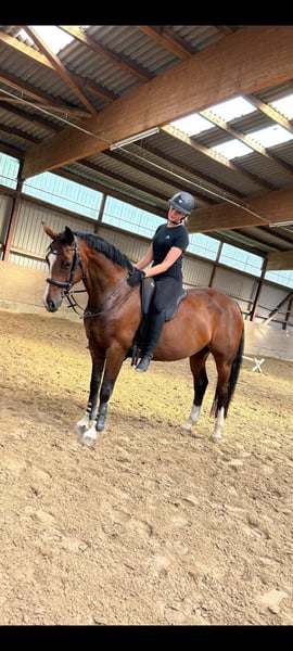 Verkaufe schweren Herzens meine bezaubernde Hannoveraner Stute Sie ist springgezogen, wo auch absolut ihre Stärke liegt. Da ich eher Dressurreiter bin, komme ich leider zu dieser Vernunftsentscheidung Ella ist 2017 geboren, 165cm, wunderschön in dunkler Jacke, mit 4 weißen Beinen und Blesse. Da sie eher kräftig ist von der Statur, deckt sie sehr gut ab. Light my Fire x Embassy I Sie hatte bereits 4 jährig ein Fohlen, hat tolles Papier und ist daher auch für die Zucht sehr interessant. Sie ist verträglich in der Herde, mit Wallachen, Stuten und oder Fohlen. Sie konnte bereits etwas Turniererfahrung sammeln, wo sie sich auch schon im A Springen platzieren konnte. Sie hat definitiv Potential für mehr. Dressurlich auf guten A Niveau. Kann auch spielend leicht fliegende Wechsel Auch mit Reitpad lässt sie sich sehr gut reiten, geht durch Wasser und springt über feste Hindernisse Sie ist Schmiede und Verladefromm, aktuell vorne beschlagen Ella ist sehr sensibel, etwas umweltorientiert, braucht einen geregelten Ablauf, viel Bewegung, Beschäftigung und Weidegang, optimal wäre Offenstall, Paddockbox oder Box mit täglich ausreichender Weidezeit. Im Umgang und unter dem Sattel ist sie unkompliziert Sie wird nicht in hauptsächlich Boxenhaltung abgegeben, da sie dann zu nervösen Verhalten neigt. Mit der richtigen Haltungsform, zeigt sie keinerlei Auffälligkeiten. Sie ist kein Anfängerpferd, sie braucht einen Reiter, der ihr Sicherheit gibt. Eine AKU kann auf Wunsch vom Käufer gerne durchgeführt werden Ich gebe sie nur in allerbeste Hände ab. Der Preis ist Verhandelbar, ein tolles Zuhause steht im Vordergrund Ein Probereiten ist gegen eine Gebühr von 30 Euro möglich, da wir Reittourismus nicht unterstützen wollen. Der Betrag wird beim Kauf natürlich wieder gegengerechnet. Privatverkauf, keine Garantie oder Gewährleistung Eventuell auch Tausch gegen einen netten und erfahrenen Allrounder/Dressurpferd möglich
