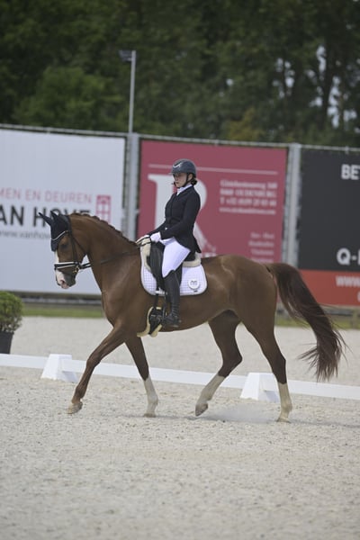 Stute Geboren 2018, wird im Jahr 2026 acht Jahre alt Hannoveranerin, v. Franz Ferdinand x Lancier Ausgebildet auf Niveau 3/4, sehr gute Ergebnisse auf Niveau 2 (GHCR und LEWB) in Belgien sowie in der Amateurklasse 2 in Frankreich im Jahr 2025 Fliegende Wechsel erlernt Sehr gute Bewegungen, hochwertiges Dressurpferd Etwas sensibel, daher nicht für einen völlig unerfahrenen Reiter geeignet Bemerkungen zu den Röntgenbildern (aber nichts, was den Sporteinsatz ausschließt), daher der niedrige Preis Weitere Fotos und Videos erhältlich unter: +32 471 54 63 53