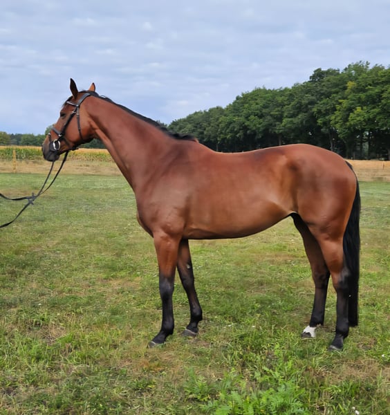 Here is a beautiful state premium mare with competition experience being offered. She was a breeding mare until last year, has given birth to two foals, and was presented at competitions for the first time this year. SLP - Jumping Technique: 8.5 Ability: 9.0 Rideability: 8.5