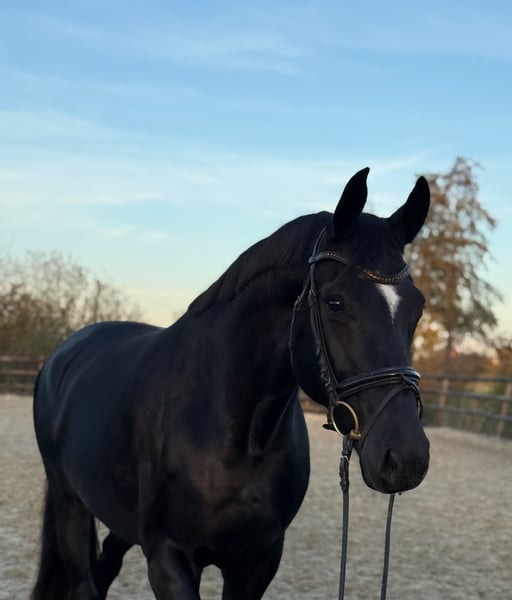 On behalf of Beautiful, very typey and well-groomed 8-year-old mare by D'Egalite x Hotline. She is in excellent condition and truly eye-catching. She was backed at a young age, then went into breeding and has passed on her qualities very well. Due to her offspring and limited stable space, this very beautiful and movement-rich mare is offered at a favorable price. She can be ridden again immediately. Very uncomplicated and well-behaved. Location: Buxtehude For inquiries, please call 017661987617.