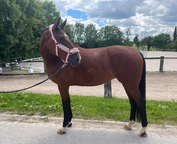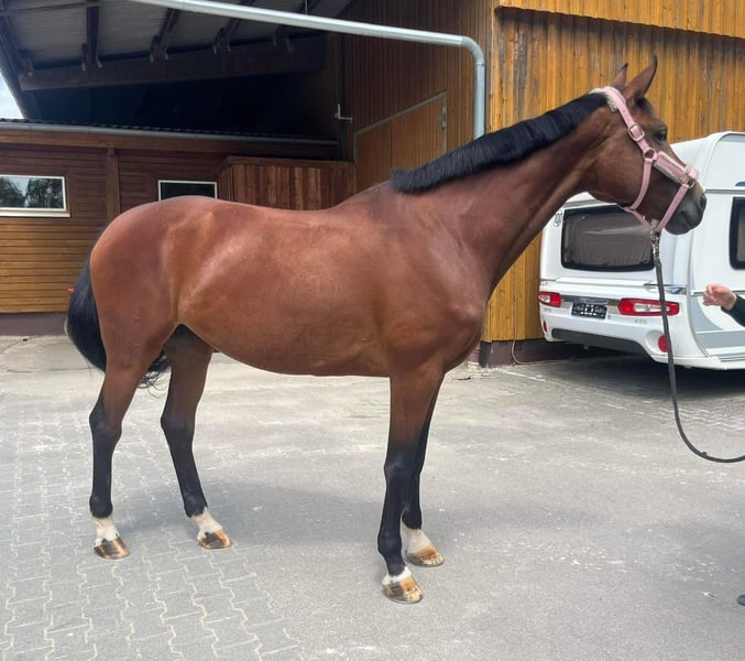 We are selling on behalf of the breeder a highly promising Hannoveraner broodmare with excellent bloodlines and great potential. For sale is Freifrau, a stunning dark bay Hannoveraner mare born in 2018. She has been successful in dressage competition, winning Dressurpferde A and L classes, and was qualified for the Bundeschampionat in 2023. Unfortunately, due to an injury, she is no longer rideable. She has a very friendly temperament, is easy to handle, and would be a valuable addition for the 2026 breeding season. Her pedigree is particularly interesting for dressage horse breeding, and she was on her way to competing at the Grand Prix level. The photos are approximately two years old. New pictures (now in winter coat) and videos can be gladly sent via WhatsApp. Price is negotiable. A good home is most important! If interested and for further information, please feel free to contact me. Viewing possible by appointment.