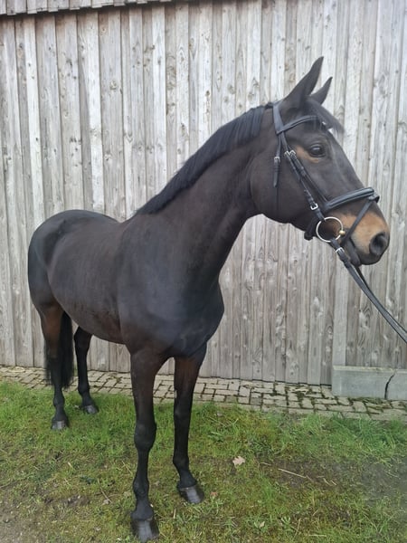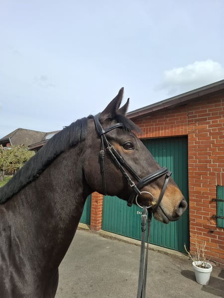 Zum Verkauf steht eine typvolle Stute, Jahrgang 2017, abstammend von Schwarzgold aus einer Hannoveraner Mutter. Sie überzeugt durch ihre harmonische Erscheinung, ihren ausdrucksstarken Kopf und ihre moderne Silhouette. Unter dem Sattel zeigt sie sich fein an den Hilfen, lernwillig und stets bemüht, alles richtig zu machen. Sie ist in allen drei Grundgangarten geritten, wobei insbesondere ihr raumgreifender Schritt hervorzuheben ist. Die Stute wurde bisher freizeitmäßig gearbeitet, bringt jedoch die nötige Qualität und Einstellung mit, um weiter gefördert zu werden. Auch Ausritte ins Gelände kennt sie und zeigt sich dabei aufmerksam und kooperativ. Aufgrund ihrer sensiblen und feinen Art eignet sie sich besonders für einen einfühlsamen, souveränen Reiter, der ihr Sicherheit gibt und ihr Vertrauen weiter stärkt. Im täglichen Handling ist sie angenehm im Umgang und eher rangniedrig. In neuen Situationen kann sie anfangs noch etwas vorsichtig reagieren und sucht dabei die Orientierung am Menschen – mit Ruhe und Klarheit lässt sie sich hier sehr gut führen. Dank ihrer interessanten Abstammung und ihres Typs ist sie auch für die Zucht eine spannende Option. Reitvideos senden wir bei ernsthaftem Interesse gerne zu. Der Verkauf erfolgt ausschließlich aus Zeitgründen und zur Bestandsverkleinerung.