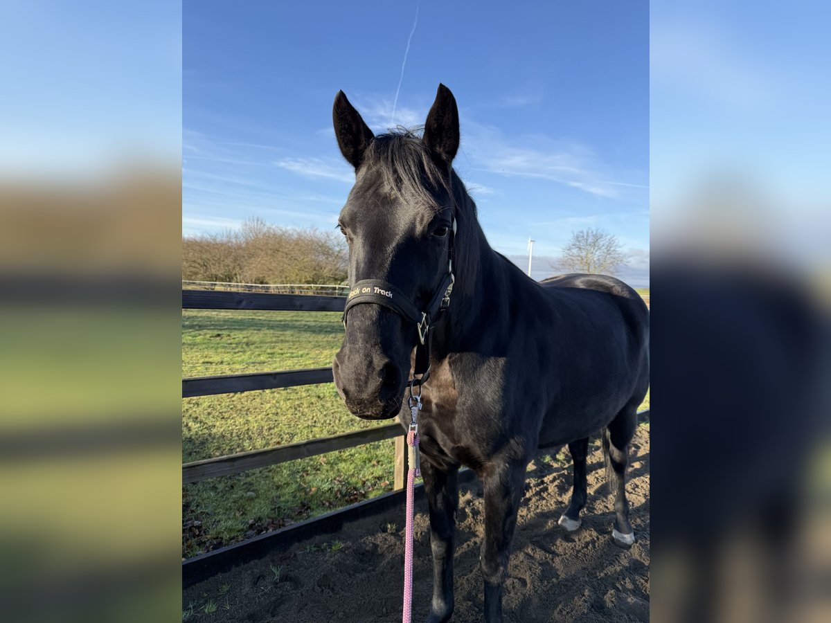 Merrie | 9 jaar (geboren in 04-2016) | ca. 1,65 m | Zwart Vrijetijdsgetraind Veilig in het terrein en verkeer Zeer vriendelijk in de omgang Kent grondwerk, longeren, dubbele longe, langzwaai etc. Braaf bij de hoefsmid, dierenarts en laden Gezond, tanden worden jaarlijks gecontroleerd door de paardenarts Bekend met open stalling/boxenhuisvesting Locatie: 38259 Salzgitter Prijs: €12.500 Proefrit mogelijk tegen een borg van €50, deze wordt verrekend bij aankoop.