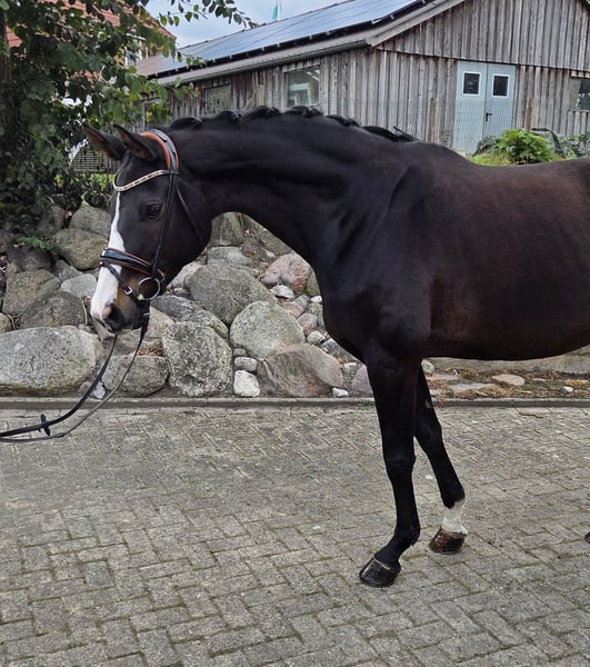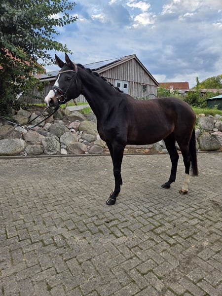 Elegant Hanoverian mare for sale – perfect for dressage! We are offering a beautiful dark bay Hanoverian mare, born in 2016. With a height of 16.1 hh, she comfortably suits taller riders (I am 6'2"). Rosi is a attentive mare with a pleasant temperament, yet she is not suitable for beginners. She is mentally sound and a true heart horse. Handling, farrier visits, and vet appointments are no problem at all. I have owned her since she was a foal, and she has never been seriously ill or had any major issues to date. Due to professional commitments, I need to reduce my horse herd. If you are interested or would like more information, please feel free to contact me. Arrange a viewing and see for yourself what a promising horse she is.