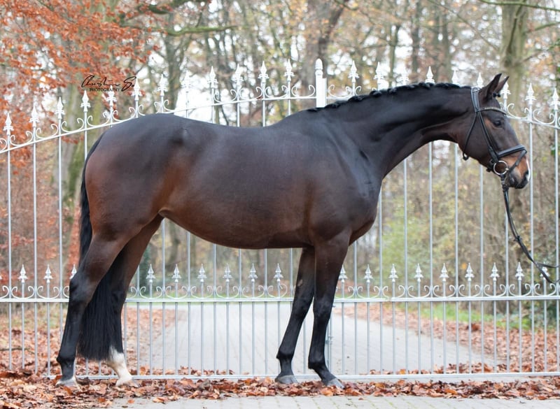 9-year-old Hanoverian mare by Don Index x Rubiloh, approximately 1.70m tall, with good X-rays for sale! The mare has 3 very good basic gaits: a fantastic walk that can be collected very rhythmically, an elastic trot with expressive extension, and a ground-covering yet practical canter. For the past year, she has placed in every start from class M to S. She is also familiar with trail rides and pole work. In handling, she is very well-behaved and loads easily.